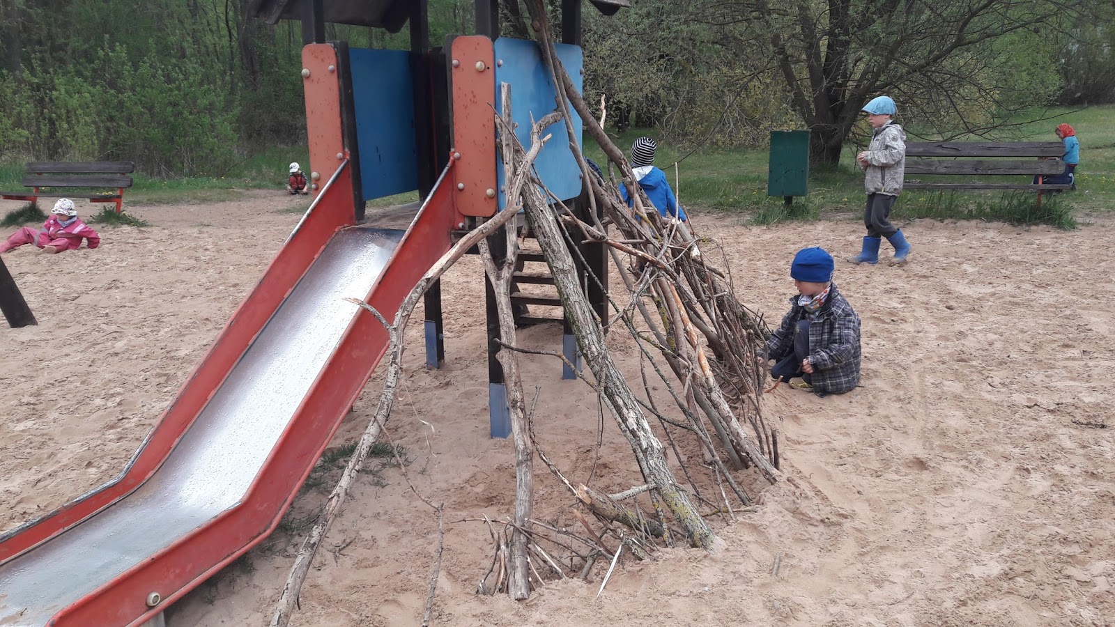 Kui klassikaline mänguvälja atraktsioon juba liiga tavaliselt muutub, võib seda täiendada ja huvitavamaks muuta. Hiljuti oli ühel puult just oksi võetud nii, et ehitusmaterjal oli kohe võtta.